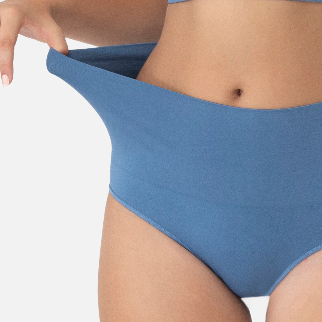 This is the first collection of at waist shapewear that will do the job. Designed and created using unique yarns that control, feel super lightweight and manage moisture, all while making you feel like you are just wearing undies.